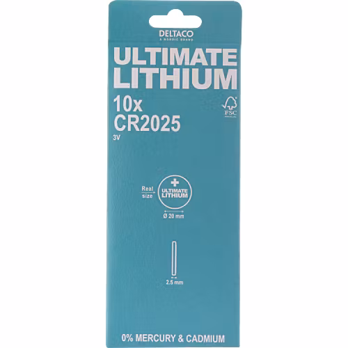 Deltaco CR2025 Litiumbatteri 10-Pack Ultimat Knappcellsbatteri för Små Enheter