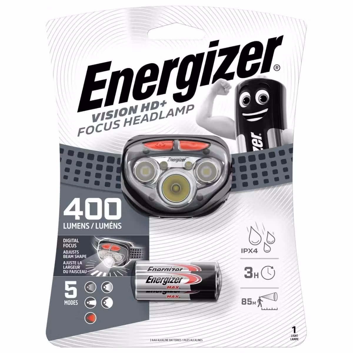 Pannlampa Energizer Vision HD+ Focus (400 lumens) 199 kr Pannlampa från Energizer. 3 batterier medföljer! 400 lumen. IPX4. 85 meter ljusstråle. Lystid 3h Produkten är tyvärr slut i lager. :( Dela Artikelnummer: 7638900412802 Leverantör: Energizer Information Energizer Vision HD+ Focus Pannlampa5 ljusinställningarIPX485 meter ljusstråleLystid 3h