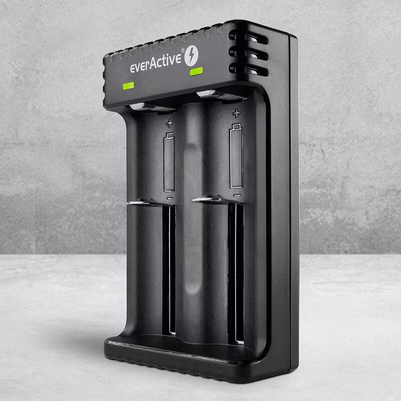 everActive LC-200 är en enkel men mycket pålitlig laddare för två celler/batterier. Enheten använder en mikroprocessor för att styra laddningsprocessen. Laddaren utmärker sig i detta segment av en relativt hög maximal laddningsström, som är 1000 mA för varje installerad cell.