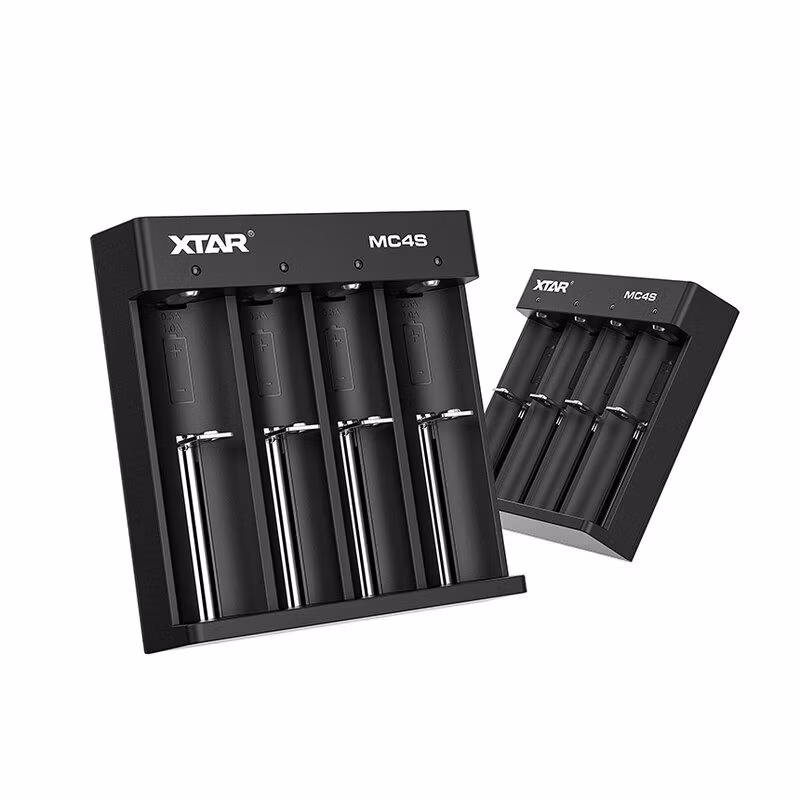 Professionell fyra-kanals, kompakt Xtar MC4S processorladdare för Li-ion- och NiMH-batterier